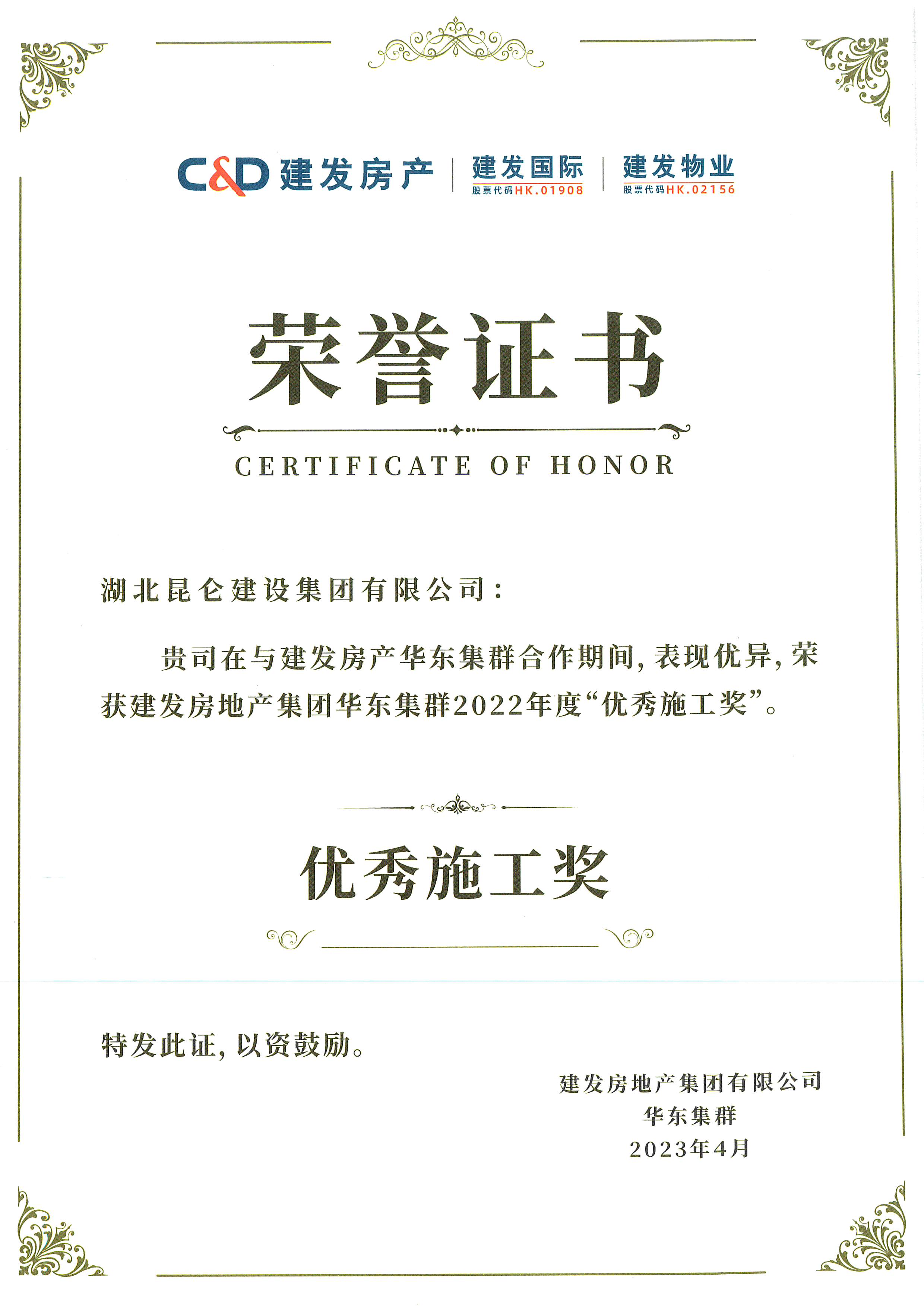 • 建發(fā)集團(tuán)2022年度優(yōu)秀施工獎(jiǎng)