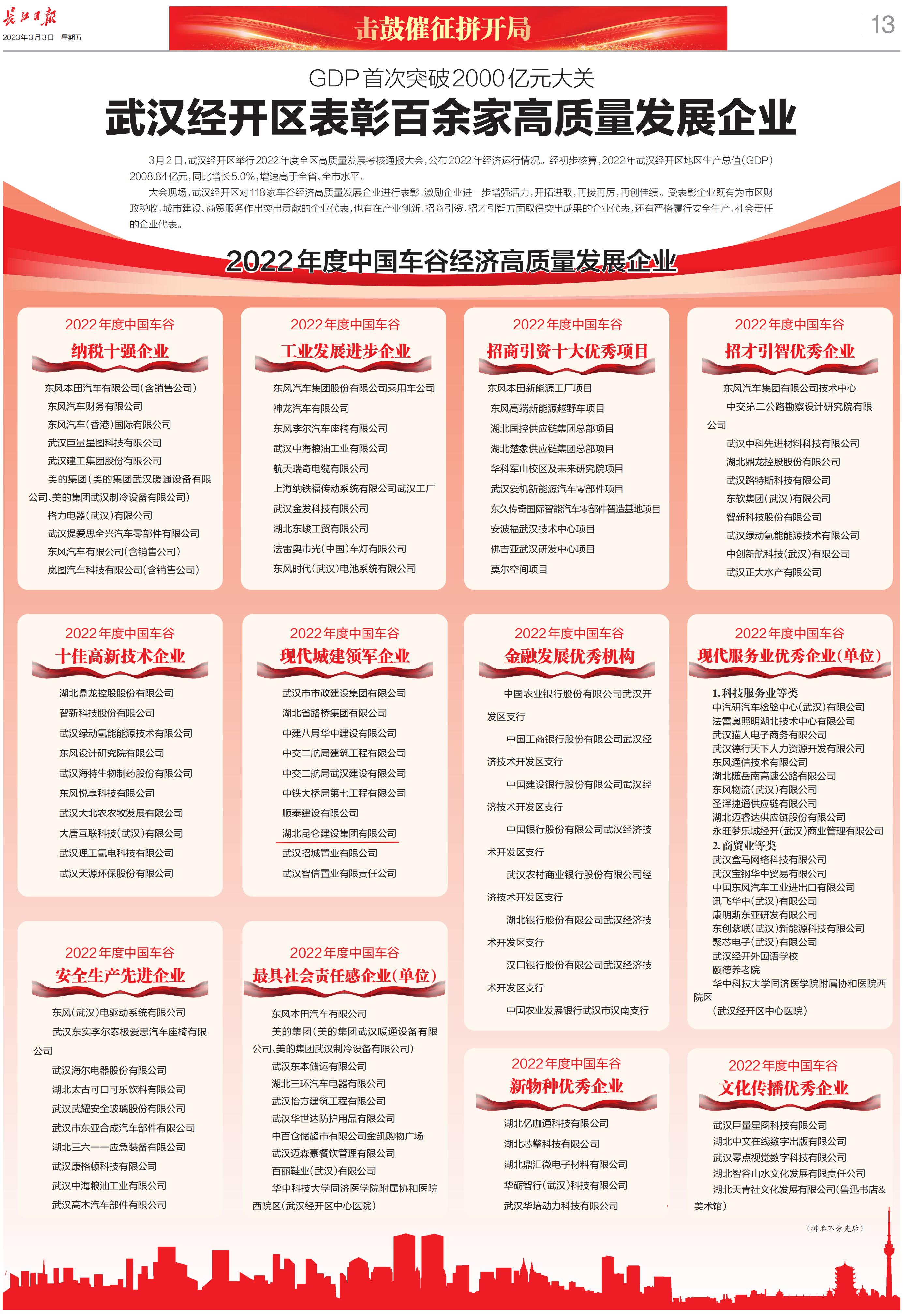 • 2022年昆侖集團(tuán)榮登武漢經(jīng)開(kāi)區(qū)高質(zhì)量發(fā)展企業(yè)(...