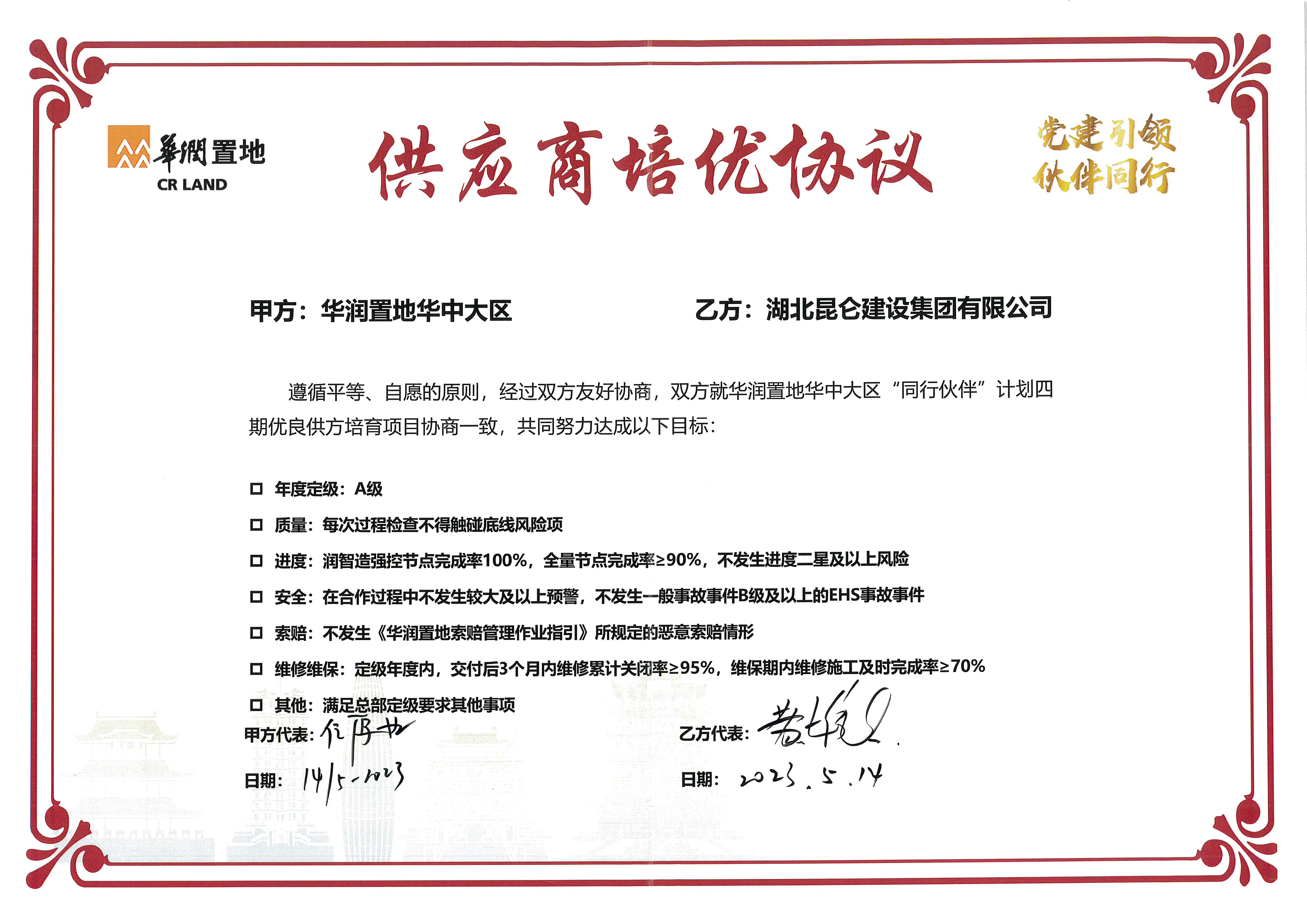 • 2023年5月14日簽署華潤(rùn)置地華中大區(qū)(供應(yīng)商...