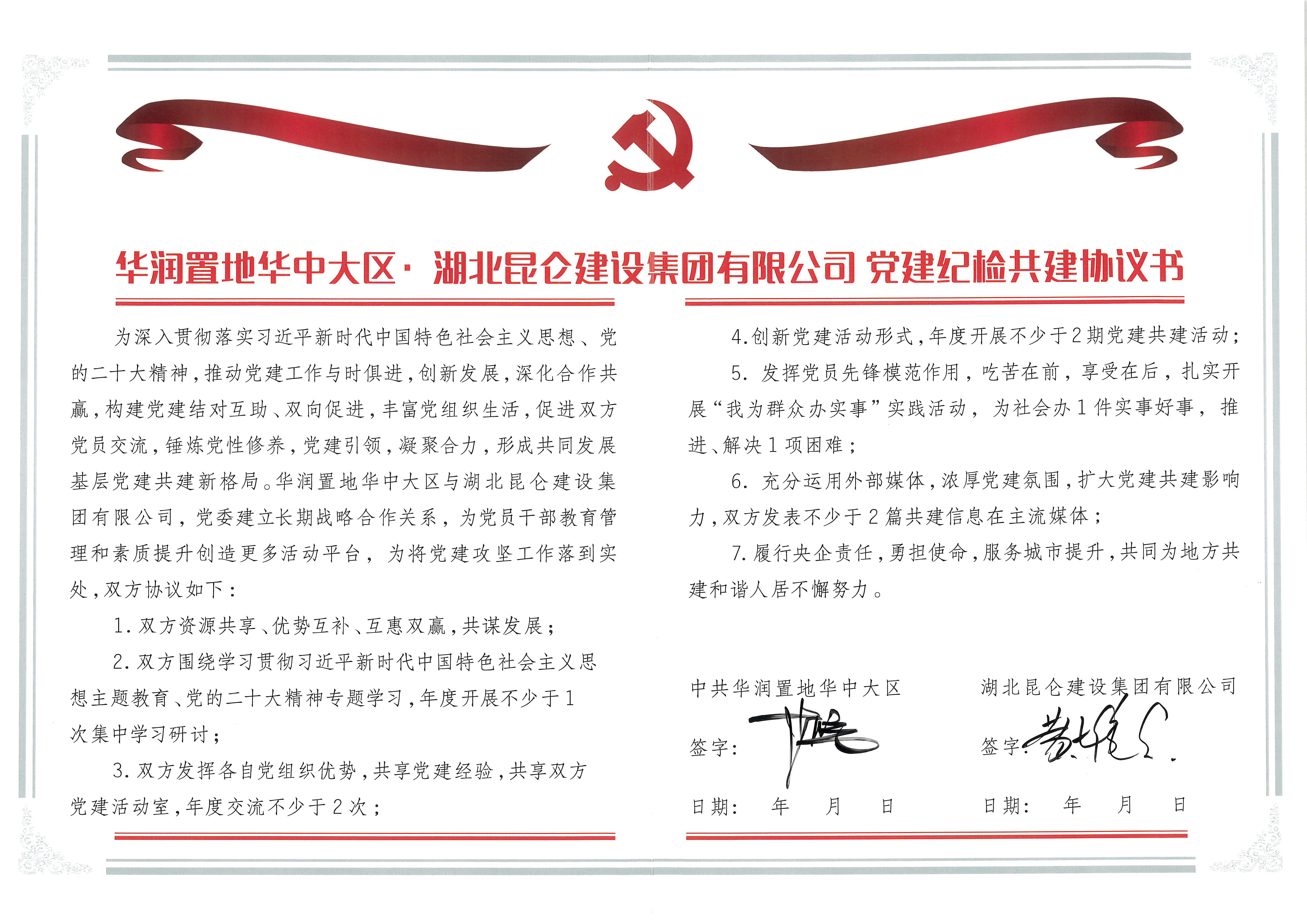 • 2023年簽署華潤(rùn)置地華中大區(qū)黨建紀(jì)檢共建協(xié)議書